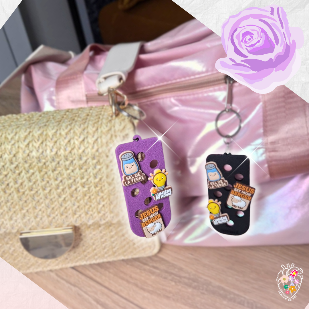 Composez un ensemble pratique et inspirant : un porte-clés de la couleur de votre choix, accompagné de 3 pins thématiques — Lumière du monde, Jésus est mon berger et Sel de la terre. Un moyen unique et fun d’exprimer votre foi au quotidien sur vos clés, sacs, trousses ou baskets.