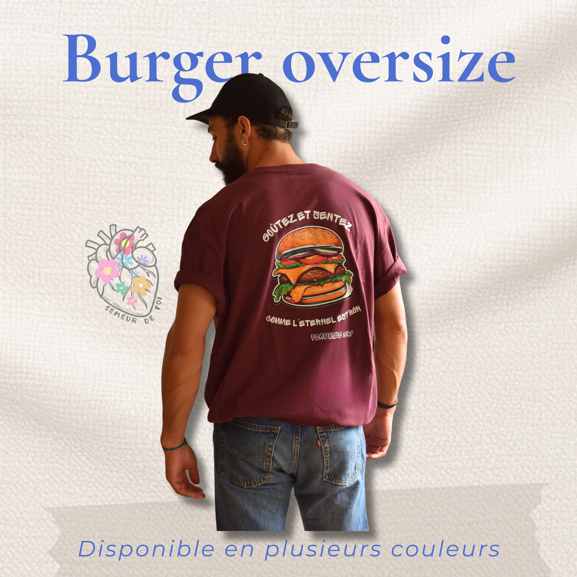 T-shirt chrétien oversize – Psaumes 34:9 “Burger”